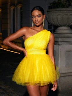 The Essie One Shoulder Tulle Maxi Dress is the perfect blend of elegance and sophistication. The one-shoulder design showcases a unique and modern neckline, while the flowing tulle skirt adds a touch of femininity and grace. The delicate fabric drapes beautifully and flows with your movements, making this dress the perfect choice for any formal occasion.
