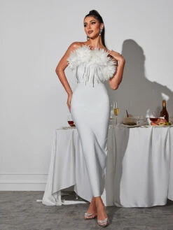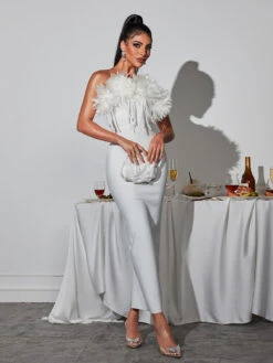 This Étienne Flower Fringe Bandage Midi Dress is the ultimate statement piece. Crafted with delicate flower fringe details and a flattering bandage silhouette, this dress will turn heads and make you feel like a fashion icon. Perfect for a night out or special event, it’s a must-have for any stylish wardrobe.