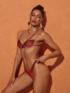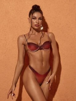 Hit the beach in style with this Eva Ombre Ombre Bikini Two Piece Set In Coffee. The ombre design accents the classic bikini set, creating a sophisticated and eye-catching look. Crafted with quality materials, the set is sure to offer comfort as well as style.