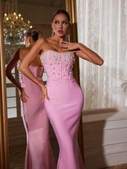 Elevate your style game with our Everett Strapless Pearl Bandage Dress! This stunning dress features a strapless design with a flattering bandage silhouette that will hug your curves in all the right places. Adorned with delicate pearls, this dress will make you feel like a true fashionista at any event. Don’t miss out on the chance to turn heads and make a statement!
