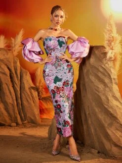 The Faelith Puff Sleeve Floral Midi Dress features romantic puff sleeves and a delicate floral print, creating a timeless and feminine look. Its midi length and flattering silhouette make it perfect for both casual outings and special occasions, offering comfort and elegance in one beautiful dress.