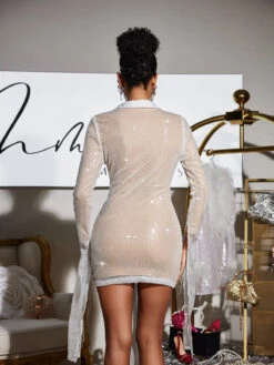 Sparkle and shine in the Faunia Folded Collar Sequin Draped Mini Dress! This dress features a stunning folded collar and is adorned with beautiful sequins, creating a glamorous and eye-catching look. With its draped design, it offers a flattering fit for any body type. Perfect for any special occasion, this dress is sure to turn heads and make you feel confident and stunning!