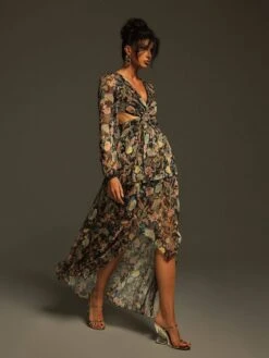 This Flavio V Neck Printed Cutout Maxi Dress will elevate your style and make a statement. The unique cutout detailing and vibrant print will turn heads, while the flowy design and comfortable v neckline will keep you feeling confident and stylish. Perfect for any occasion, this dress is a must-have for any fashion-forward individual!