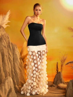 Stand out with the Gaelith Strapless Mesh Maxi Dress, designed to showcase your elegance and confidence. The strapless silhouette beautifully frames your neckline, while the delicate mesh fabric adds a touch of modern sophistication. Its flowing maxi length ensures graceful movement, making it the perfect choice for special occasions where you want to leave a lasting impression.
