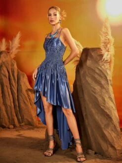 Make a striking impression with the Gaelthor Spaghetti Asymmetrical Maxi Dress. Featuring delicate spaghetti straps and a unique asymmetrical hemline, this dress combines modern design with elegant flow. Its flattering silhouette enhances your figure while offering effortless movement, perfect for evening events or stylish gatherings. Step out confidently in a dress that blends contemporary flair with timeless sophistication.