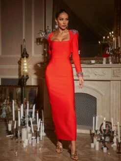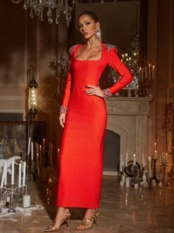 Indulge in luxury with the Gaiva Square Collar Rhinestone Bandage Maxi Dress. The elegant square collar, sparkling rhinestone bandage, and comfortable maxi dress silhouette will make you feel like royalty. Perfect for special occasions or a night out, this dress is sure to turn heads and make you feel confident and glamorous.
