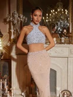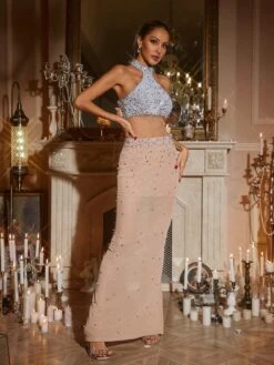 Be the center of attention in the stunning Garrad Halterneck Embellished Maxi Dress! This dress features intricate beaded detailing on the halterneck and a flowing maxi silhouette, perfect for any special occasion. Stand out and feel fabulous in this elegant and glamorous dress!