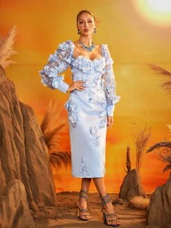 The Gexmir Long Sleeve Flower Midi Dress combines elegance with comfort, featuring a flattering midi length and delicate floral pattern. Its long sleeves provide coverage for cooler days, while the lightweight fabric ensures breathability. Perfect for both casual outings and special occasions, this dress effortlessly enhances your style with a touch of feminine charm. Elevate your wardrobe with this versatile and graceful piece.