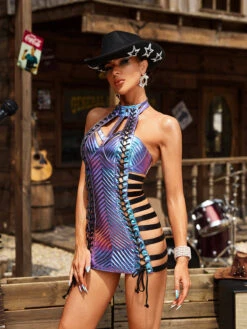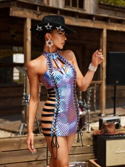 Experience the ultimate in style and luxury with our Gracyn Halterneck Lace Up Leather Mini Dress. Made with high quality leather and featuring a flattering halterneck design, this dress will accentuate your curves and make you stand out in any crowd. Feel confident and sexy with every step you take.