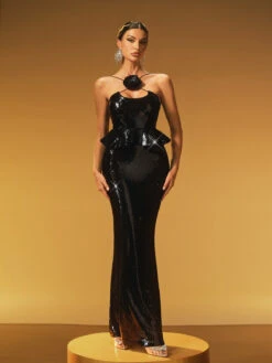 Elevate your style with the Haelric Spaghetti Sequin Flower Maxi Dress. Featuring delicate spaghetti straps and shimmering sequin floral details, this maxi dress combines elegance with a touch of sparkle. Perfect for special occasions, it offers a flattering silhouette that moves gracefully with you, ensuring you stand out effortlessly. Make every moment memorable in this stunning dress designed to captivate.