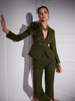 Introducing the Halcyon Tulle Flower Button Blazer Set – a must-have for any fashion-forward individual. Crafted with exquisite detail, this set features delicate tulle flower and buttons that add a touch of elegance to the chic blazer. With its versatile design and impeccable fit, this set is perfect for any occasion, making you look and feel confident and stylish. Elevate your wardrobe with this stunning blazer set.