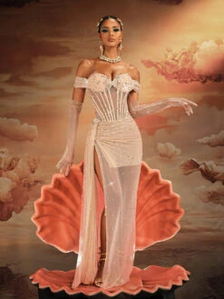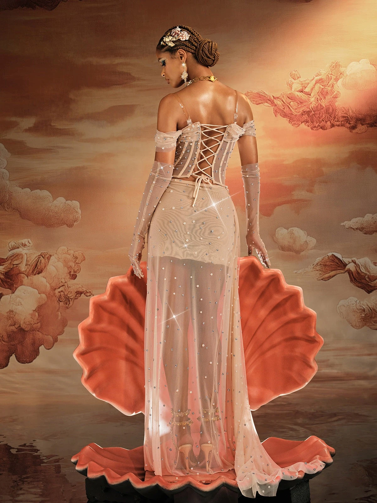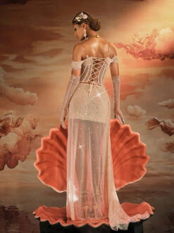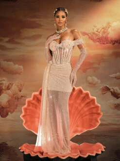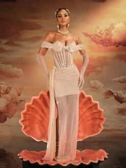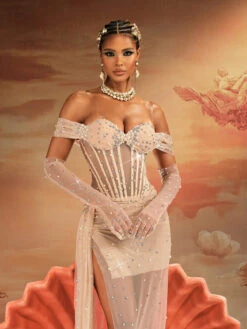 Effortlessly elegant and oh-so glamorous, the Haldor Off Shoulder Crystal Mesh Draped Maxi Dress is a must-have for any special occasion. Featuring a captivating crystal mesh design and a stunning draped silhouette, this dress will make you stand out and feel like a true queen. Turn heads and make a statement with this showstopping dress!