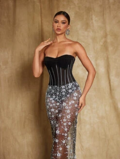 Introducing the must-have dress for any special occasion – our Harbor Strapless Flower Sequin Maxi Dress! With stunning flower sequin detailing and a flattering strapless design, this dress will make you stand out from the crowd and feel like a true queen. Perfect for weddings, proms, or any glamorous event.