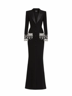 This glimmering Hassan Rhinestone Blazer Dress is a showstopper with its intricate rhinestone detailing. The perfect combination of elegance and edge, it’s sure to turn heads and make a statement. Elevate any occasion with the Hassan Rhinestone Blazer Dress.