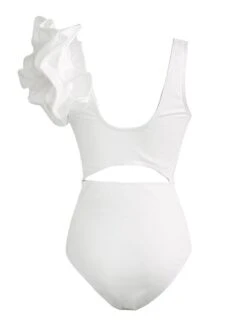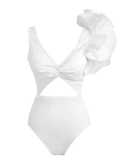 This Heather Ruffle Cutout One Piece Swimsuit features elegant ruffle details, as well as a flattering cutout design. Perfect for a day at the beach or pool, this swimsuit is sure to make a statement.