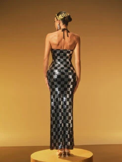 Turn heads with the Hexar Halterneck Flower Sequin Maxi Dress. Its elegant halterneck design and sparkling sequin flower embellishments create a captivating look perfect for any special event. The flowing maxi silhouette enhances your natural grace, making you feel confident and radiant all night long. Embrace glamour and sophistication effortlessly with this stunning dress.
