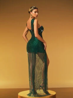 Elevate your evening look with the Hyressa Rhinestone Mesh Split Maxi Dress. Featuring a shimmering rhinestone mesh fabric and a daring side split, this dress combines elegance with a touch of bold glamour. Perfect for special occasions, it offers a flattering silhouette that moves gracefully with you, ensuring all eyes are on you throughout the night. Make a stunning statement effortlessly.