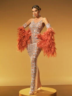 Notice: Please note due to the material of this dress, some feathers might fall. This is not a fault.