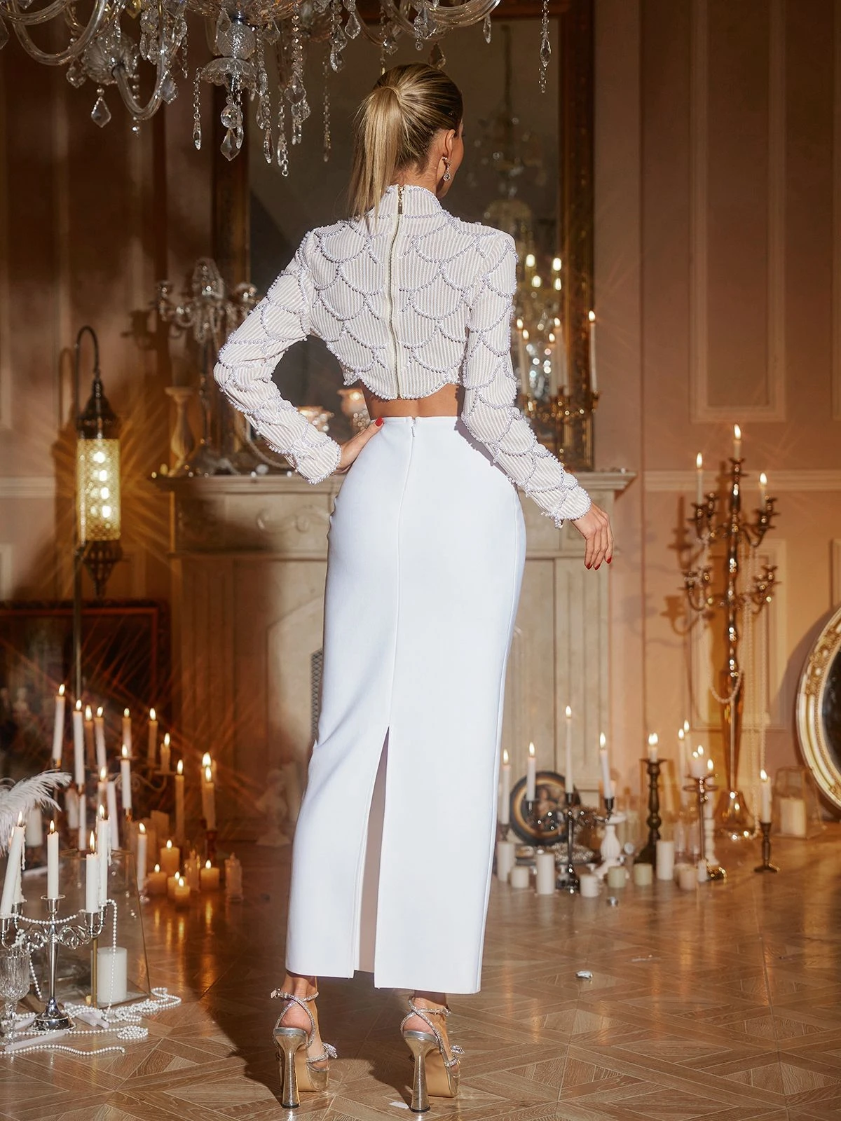 Experience elegance and sophistication with our Iekika Pearl Sequin Bandage Skirt Set. Made with high-quality materials, this set features delicate pearl and sequin embellishments that add a touch of glamour. Show off your style and confidence in this must-have set that is perfect for any special occasion.