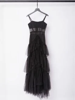 Step out in style in the sultry-chic Inaya Mesh Maxi Dress In Black! It features a sleeveless square neckline, spaghetti straps, and ruched detailing. It flattering high waist flows out to a floor length.