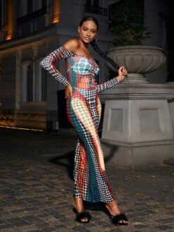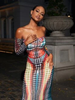 This Ishi Off Shoulder Maxi Dress features an off-shoulder design and long sleeves for an elegant look. Its unique 3D pattern adds visual interest to the maxi length silhouette. Look chic and stay comfortable in this stylish dress.