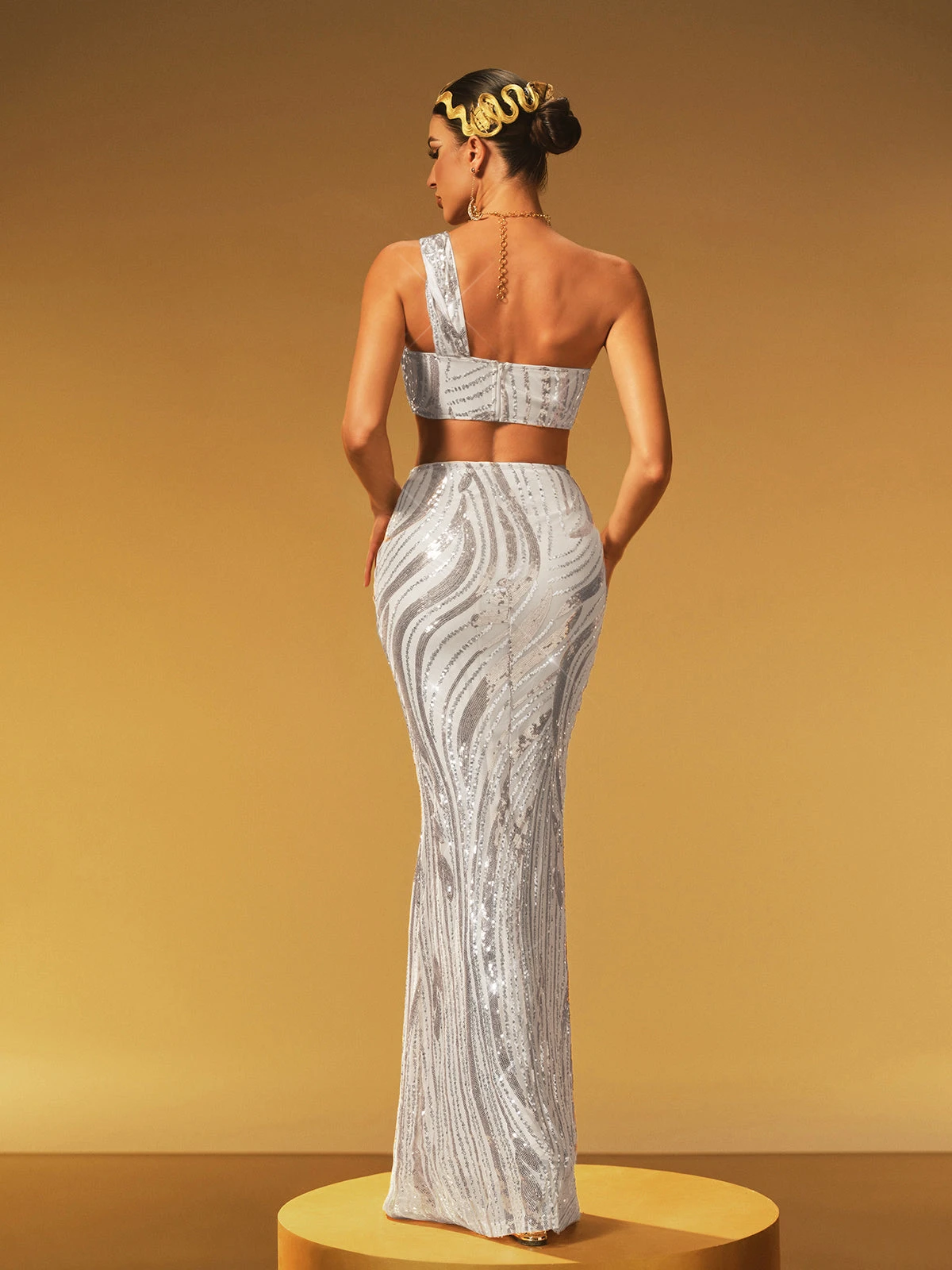 Shine brilliantly in the Jaelthar One Shoulder Sequin Skirt Set. This chic ensemble features a sleek one-shoulder top paired with a dazzling sequin skirt, creating a perfect blend of modern style and glamorous sparkle. Designed to flatter your figure, it’s ideal for making a bold statement at any special occasion or night out. Elevate your wardrobe with this stunning, confident look.