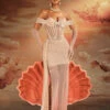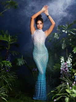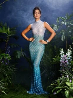 Elevate your style with the elegant Jenji Seashell Rhinestone Maxi Dress. Featuring intricate seashell rhinestone detailing, this dress is sure to make a statement. The flowy silhouette and comfortable fabric will make you feel like a goddess. Perfect for a beach vacation or a summer night out.