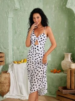 This Jethro Dot Cutout Swimwear Two Piece Set offers a stylish and comfortable beach look. Made with high-quality materials, it features a unique dot cutout design for a trendy touch. Perfect for a day at the beach or pool, this set is sure to turn heads.