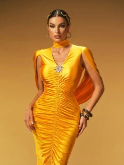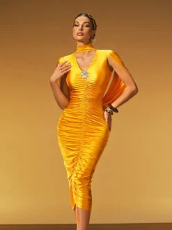 The Jexara V Neck Ruched Midi Dress combines elegance with flattering design. Its V-neckline enhances your silhouette, while the ruched detailing adds texture and shape, creating a slimming effect. Perfect for both daytime events and evening occasions, this midi dress offers a versatile and stylish option that highlights your confidence and grace. Elevate your wardrobe with a piece that effortlessly blends comfort and sophistication.