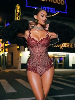 Be the star of the show in our Jodelle Rhinestone Sequin Bodysuit! This stunning piece is embellished with sparkling rhinestones and shimmering sequins, perfect for catching the light and turning heads. With a form-fitting design and comfortable fabric, you’ll feel confident and glamorous all night long. Elevate your wardrobe and make a statement at any event with this must-have bodysuit.