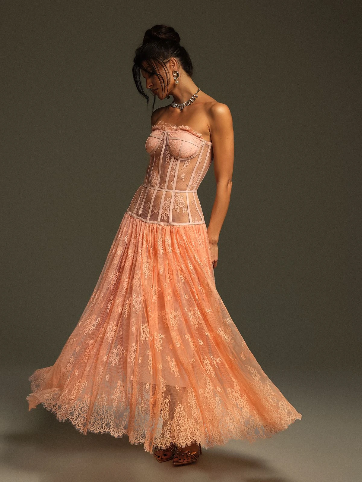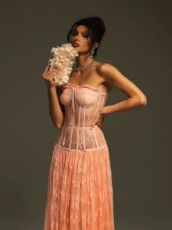 Unleash your inner elegance with the Juric Strapless Lace Mesh Maxi Dress. Embrace the flattering neckline and intricate lace mesh detailing for a stunning and timeless look. Let this dress inspire your confidence and charm at any special occasion.
