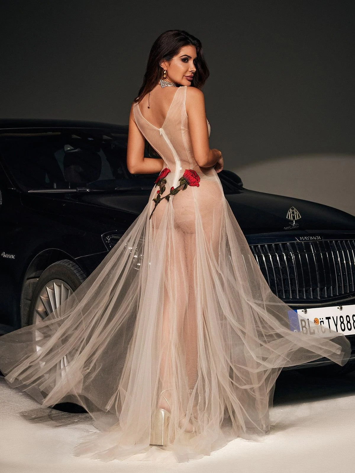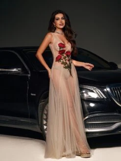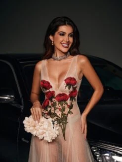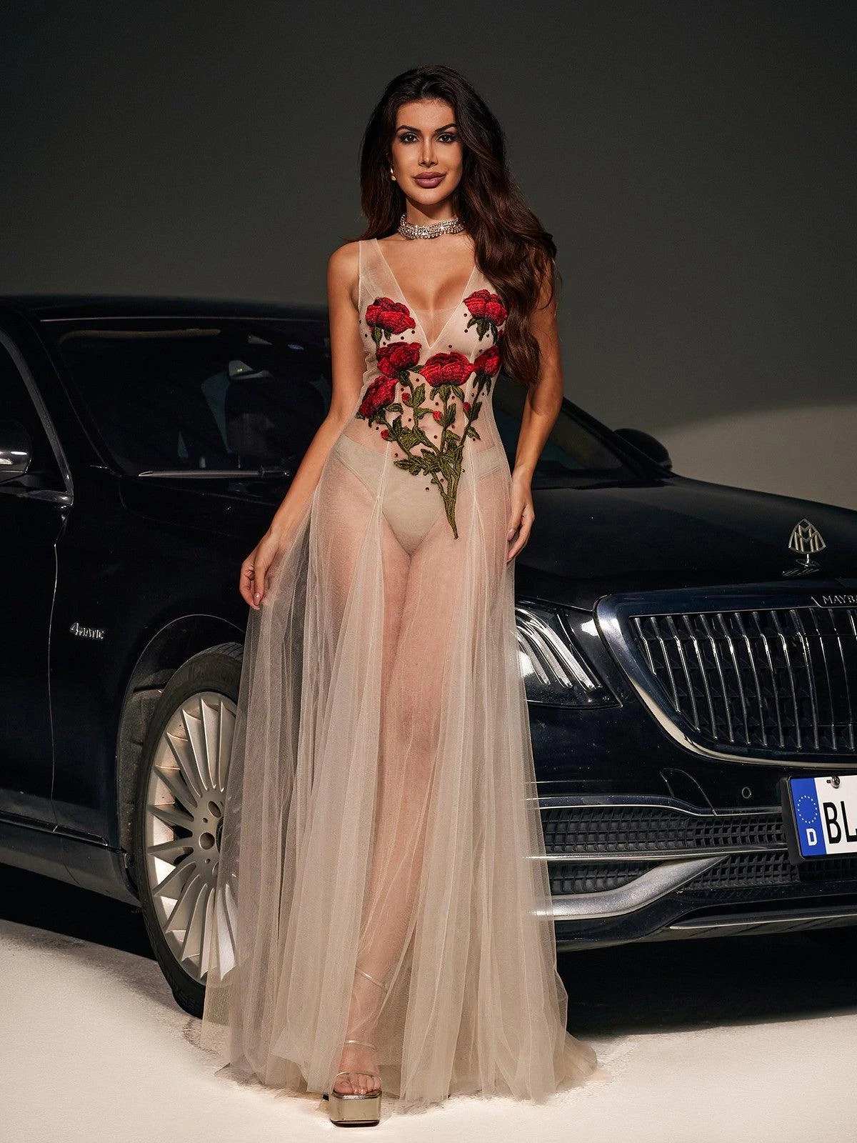 Intricately designed with floral embroidery, our Kateri dress is a show-stopping piece. The V-neck adds a touch of sophistication while the mesh fabric adds an air of elegance. Perfect for any special occasion, this dress is sure to make you the center of attention.