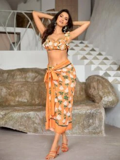 The Kesia Ruffle Printed Bikini Three Piece Set is perfect for making a statement this season. Its classic design featuring soft ruffles and a beautiful floral print makes it the perfect choice for any occasion. The three pieces offer excellent coverage and comfort, sure to make you feel confident in your look.