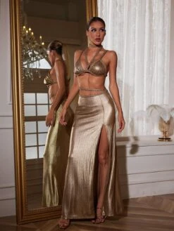 Get ready to turn heads in this Kleo Corded Split Skirt Set! With its unique design and quality fabric, this set will make you feel confident and stylish. The split skirt adds a touch of edge, perfect for any occasion. Elevate your wardrobe with this must-have set!