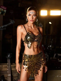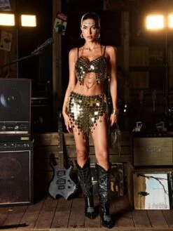 This Kourtnie Acrylic Circle Chainmail Top is the perfect blend of edgy and elegant. Made with high-quality acrylic material, this top features a unique chainmail design that will make you stand out from the crowd. Its lightweight and comfortable fit make it an ideal choice for any occasion.
