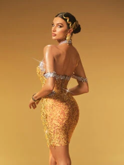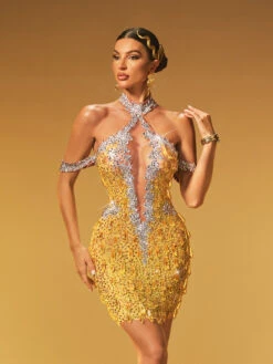 Elevate your evening with the Krythos Halterneck Crystal Mesh Mini Dress in Chartreuse. This stunning dress features a shimmering crystal mesh fabric that catches the light beautifully, creating a captivating glow. The halterneck design highlights your shoulders and neckline, while the mini length adds a bold, confident edge. Perfect for making a memorable impression at any event, this dress combines elegance with a modern, daring flair. Step into the spotlight and let your style shine.