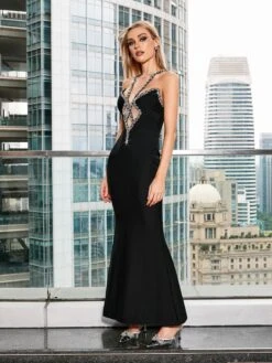 Introducing the Kylo Crystal Bandage Maxi Dress. Crafted with luxurious bandage material, this dress offers a versatile and sophisticated look. The crystal embellishments add a touch of elegance, making it perfect for any formal occasion. Elevate your style with this must-have dress.