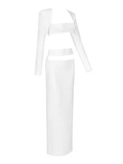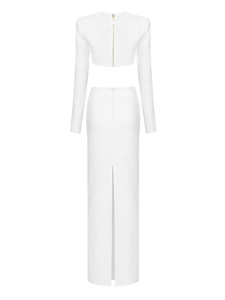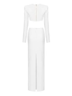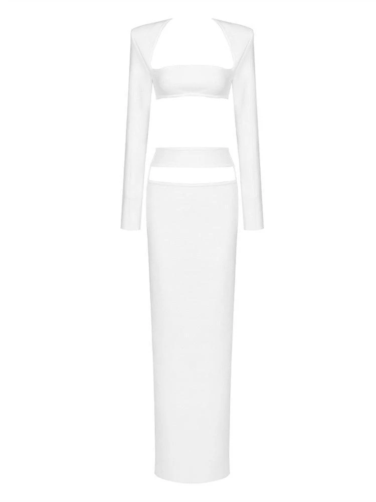 A sexy cutout detailing that lends you an alluring look. This Kynlee Cutout Bandage Set keeps a perfect balance between sophisticated and playful. Made of high quality knit, this set also has a sexy cut-outs accented at the chest and the waist, a long sleeve styling, a floor-length hem. Pair it with strappy heels and a matching clutch to make a statement!