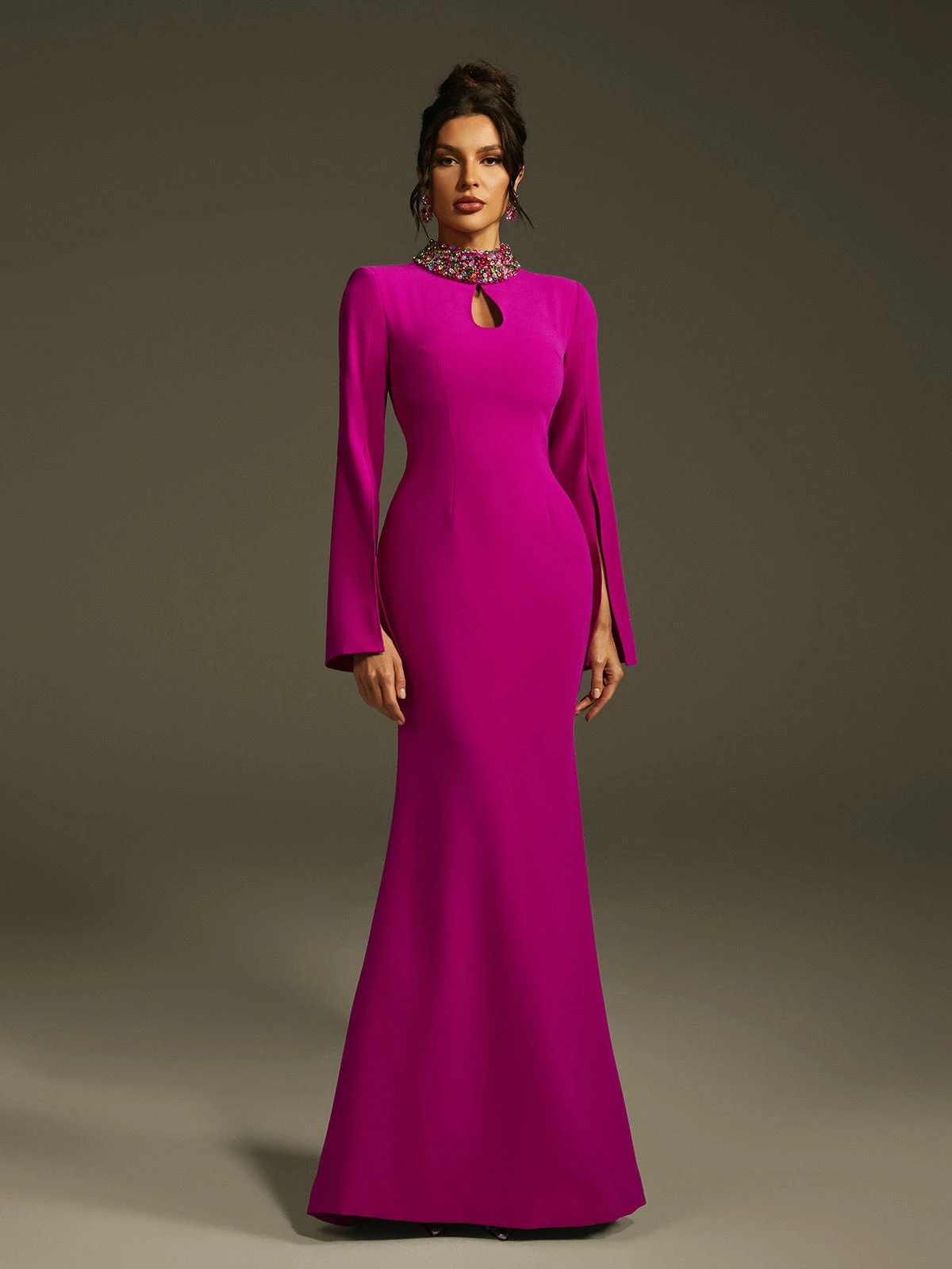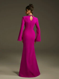 Make a striking impression in the Laksha Cape Sleeve Cutout Maxi Dress in purple. Featuring elegant cape sleeves and stylish cutouts, this dress offers a perfect balance of sophistication and contemporary flair. Its flowing maxi length enhances your silhouette, ensuring you stand out with confidence at any occasion. Embrace bold elegance with this unforgettable statement piece.