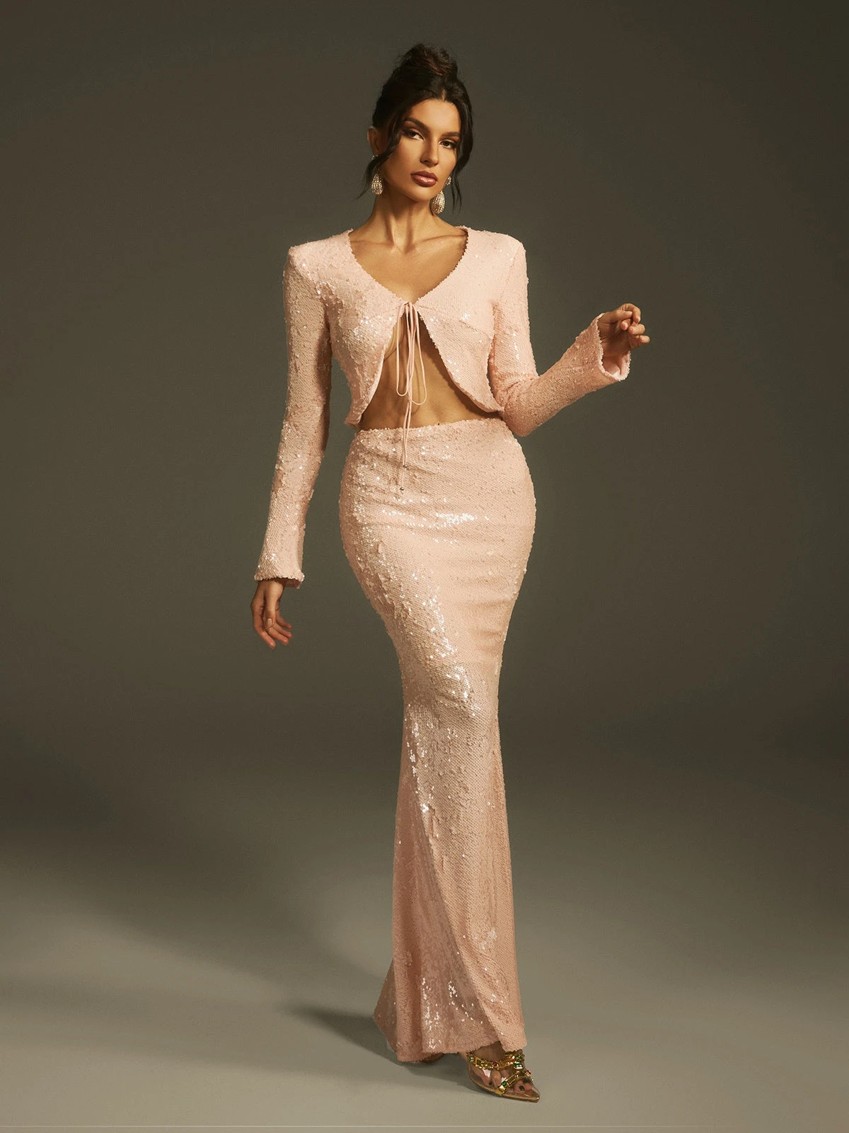 Elevate your style with the Laraib Sequin Skirt Set in Apricot. This dazzling ensemble features shimmering sequins that catch the light beautifully, adding a touch of glamour to any occasion. The soft apricot hue complements a variety of skin tones, making it a versatile choice for your wardrobe. Perfect for parties or special events, this set combines elegance and sparkle to ensure you stand out with confidence and grace.