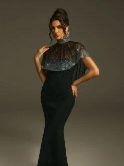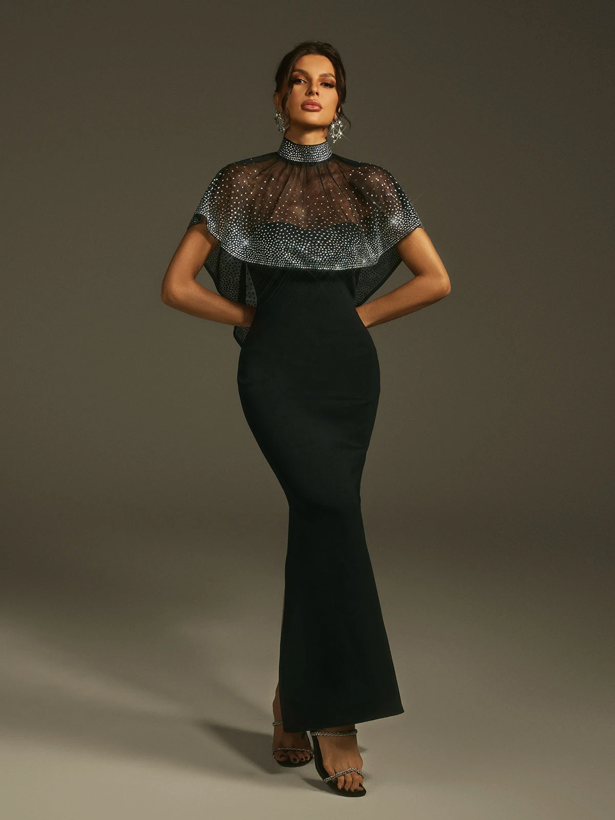 Elevate your evening look with the Lenah High Neck Rhinestone Bandage Maxi Dress. Featuring a sleek bandage fit that sculpts your figure and a high neckline adorned with sparkling rhinestones, this dress combines bold glamour with sophisticated style. Perfect for making a memorable impression at any formal event or special occasion.