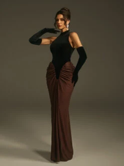 Exude timeless sophistication with the Lenore Halterneck Velvet Maxi Dress with Gloves. Crafted from luxurious velvet, this dress features a flattering halterneck design that highlights your shoulders and neckline. Paired with elegant matching gloves, it creates a refined and polished look perfect for upscale events and special occasions where elegance is essential.