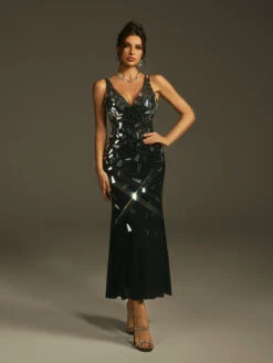 Step into effortless elegance with the Lesya V Neck Acrylic Midi Dress. Crafted from smooth acrylic fabric, this dress offers a flattering fit and comfortable wear. The V-neckline adds a touch of sophistication, making it perfect for both daytime events and evening occasions. Its midi length strikes the ideal balance between chic and versatile, ensuring you look polished and confident wherever you go.