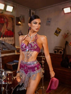 Elevate your style with the Lexor Crystal Fringe Sequin Top Set, designed to dazzle at every occasion. This shimmering set features intricate crystal embellishments and playful fringe details that catch the light with every movement. Perfect for making a bold statement, it combines glamour and fun, ensuring you stand out effortlessly. Ideal for parties or special events, this set adds sparkle and sophistication to your wardrobe.