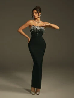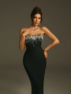 Turn heads with the Leyati Strapless Crystal Fringe Bandage Dress. This stunning piece features a figure-hugging bandage design that sculpts your silhouette, while sparkling crystal fringe adds glamorous movement and shine. Perfect for special occasions, it combines elegance and bold style to make you the center of attention all night long.