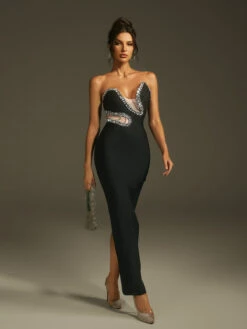 Turn heads with the Leyati Strapless Crystal Fringe Bandage Dress. This stunning piece features a figure-hugging bandage design that sculpts your silhouette, while sparkling crystal fringe adds glamorous movement and shine. Perfect for special occasions, it combines elegance and bold style to make you the center of attention all night long.