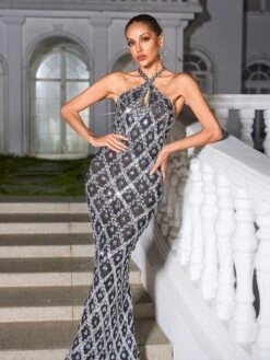 Looking for the perfect dress for a special occasion? Look no further than our Liora Backless Sequin Crystal Maxi Dress! Made with stunning sequins and crystals, this dress will make you shine and turn heads. Its backless design adds a touch of elegance and the gorgeous black color will make you stand out. Get ready to make a statement and be the center of attention in this beautiful dress.