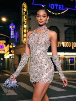 Elevate your style with our Liora Round Neck Sequin Crystal Mini Dress! This stunning dress features intricate sequin and crystal detailing, perfect for catching the light and turning heads. Designed with a round neck and mini length, it’s the perfect combination of elegance and glamour. Make a statement at any event with this dress!
