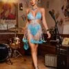 This stylish Liora Sequin Crystal Mini Dress In Dark Nude is a head-turner. It is made with a sequin fabric glittering with crystal embellishments, finished off with a mesh mini length skirt that adds a flirty touch. Perfect for a special occasion!