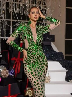 Experience the ultimate combination of elegance and comfort with our Livine Acrylic Embellished Mesh Maxi Dress. Made with luxurious materials, this dress will make you stand out in any occasion. Its delicate details and flowing silhouette will leave you feeling confident and beautiful. Elevate your wardrobe today!